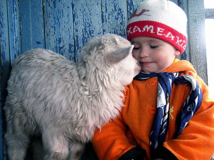 Линка и Овен Приехали к бабе Лели, а там полный дом козлят оказался. Деду удалось поймать самого маленького, его то мы с Линкой и тискали. Козленок тоже был счастлив на лавочке потоптаться, в травке погулять, молочко полакать.