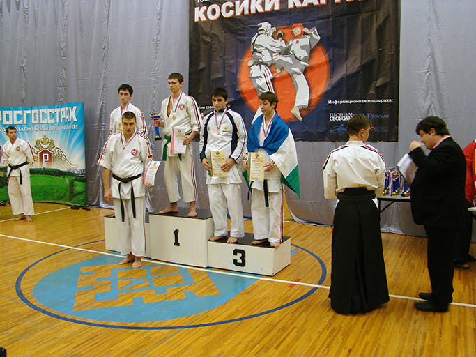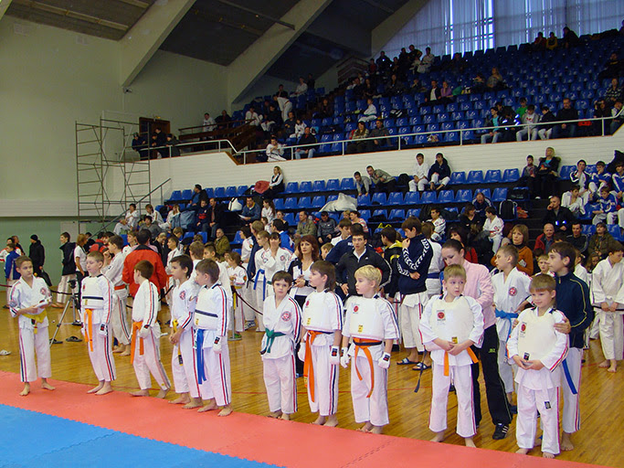 Чемпионат России по косики каратэ 2010 Тольятти, спорткомплекс «Акробат» На чемпионат приехало 10 команд. Вовка караулил кирасы и «болел за наших и за своих», Татарка бродил по залу с растерянным взглядом, я выполняла роль шлемоносца, а Леха стал чемпионом (молодец, самая представительная категория, 5 боев!).