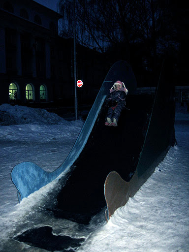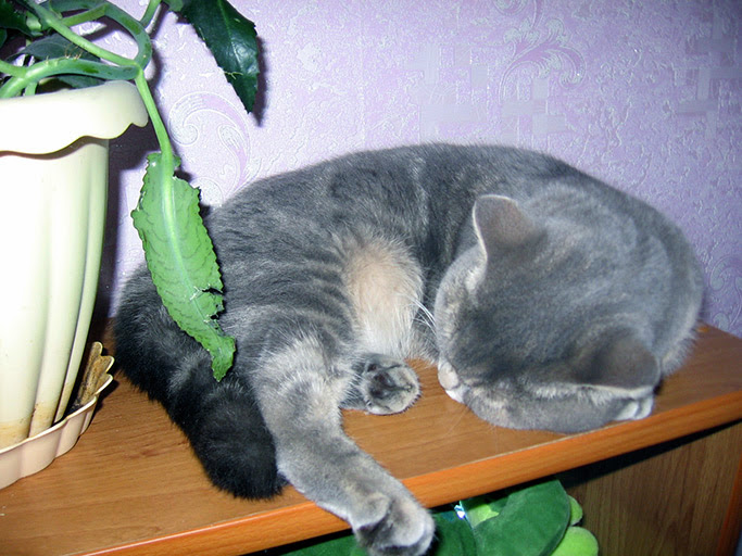 Символ Нового, не выдержав объятий — спрятался на полку и уснул. Пришлось Линки замещать его на вечер... В предновогодний вечер — вся горка была нашей! Снегурочка и Снеговик пожелали всем кошкам — сметанки, да погуще! А утром — тигренок превратился в Золушку...