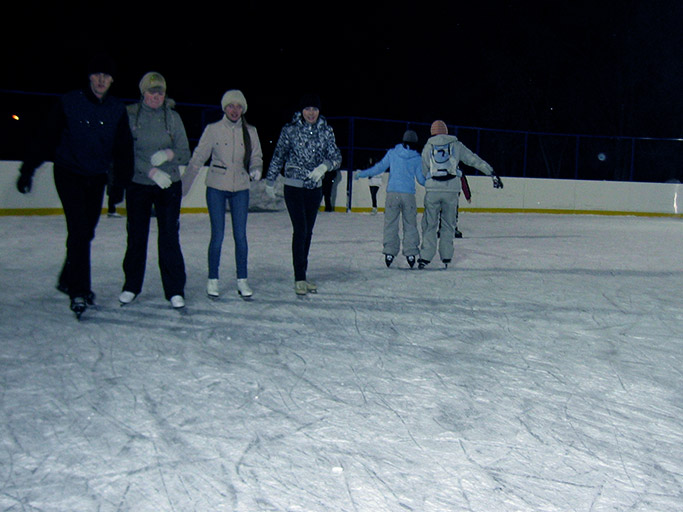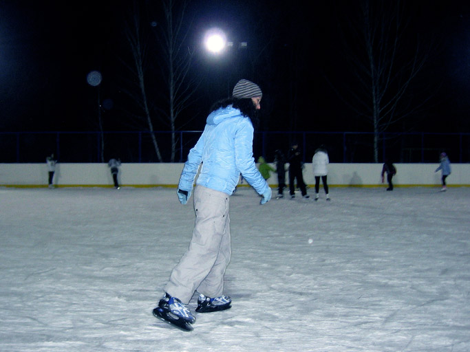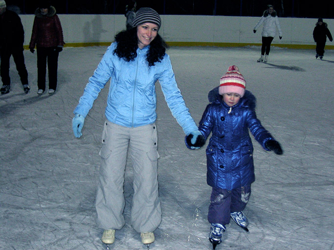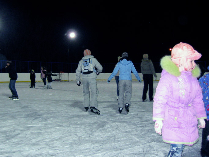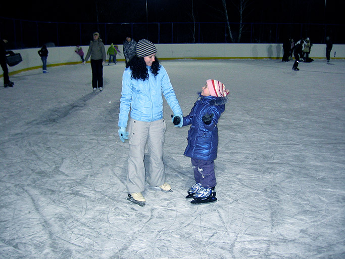 Хоккейная коробка на Гидротехнической Линка учится: походила/постояла, решила — буду фотографом: "Надевай-ка мам коньки!".