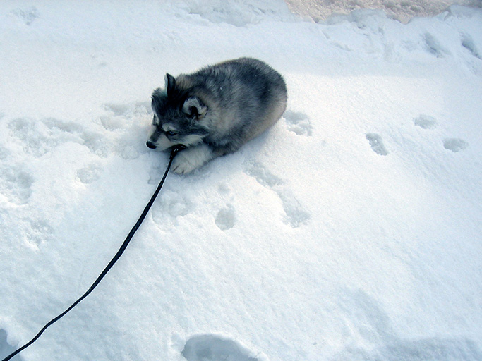 Первая прогулка в даль Прогулка на личном. Иногда ступает, проваливается, а уставая, намекает: «Нет!» Любит винегрет, и любит грызть.