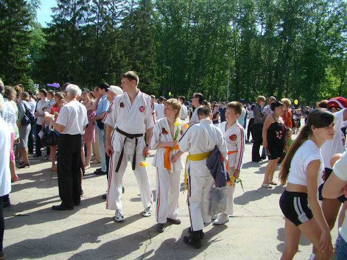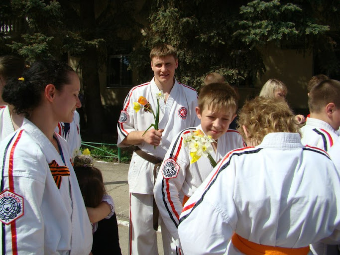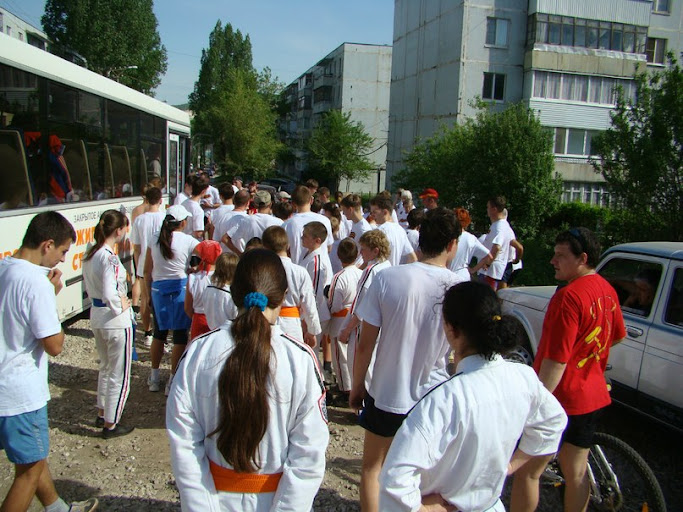 Высадка рано утром, построение, старт, традиционно. Диктор надрывается: «И вот на горизонте появляется представитель от каратистов, мне подсказывают Тат-тарка Андрей... (камера бегуна крупным планом, и уже, сначала по губам, а по мере приближения к финишной — отчетливо в звук: "За Меда-а-алькууу!!!" Да, вне всякого сомнения, это победа друзья!)». К тому времени Настя уже закупались цветами, благо здесь же оформляют кредиты. Да и Линочка долго не искала, благо: «Ваши белые пижамы видны издалека!».