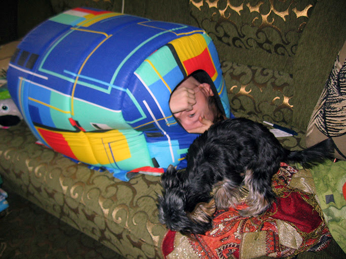 В то время, когда Дизель ходил по своим маленьким делам — Линка заняла жилплощадь (вполне уютно так заняла, как улитка). Возмущению хозяина не было придела... После скулежа и таскания за косу Лины — освободила жилплощадь.
