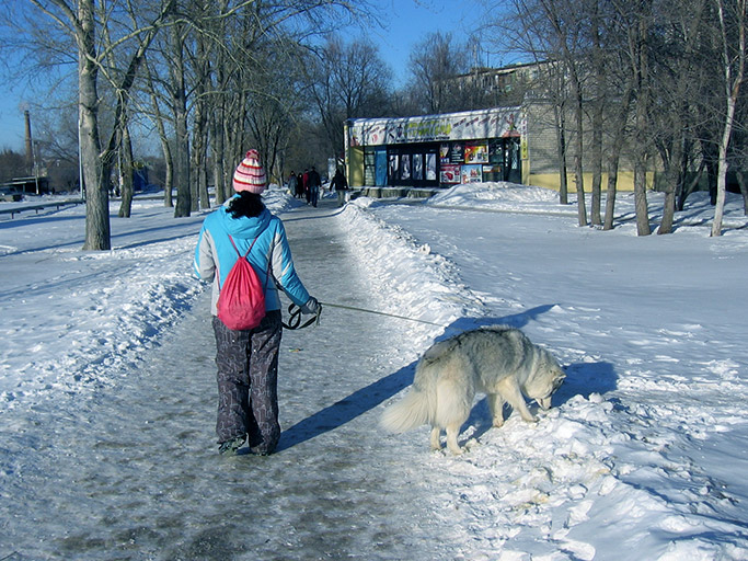 По Пумкиным меркам гуляли продуктивно: она успела и в снегу поваляться, и палки погрызть, безудержно гонять, искать...