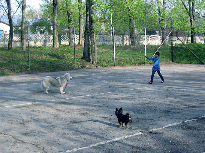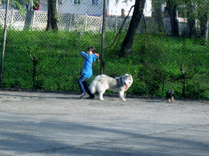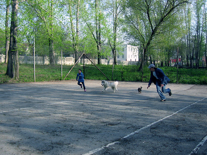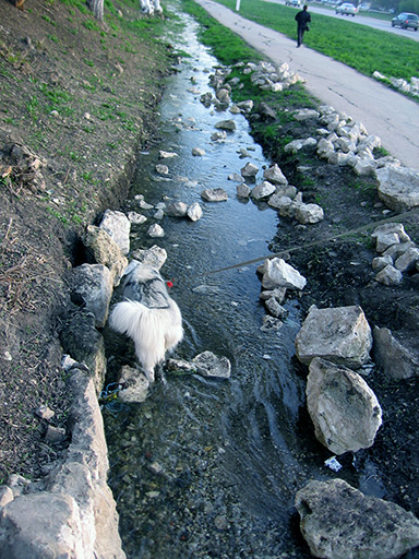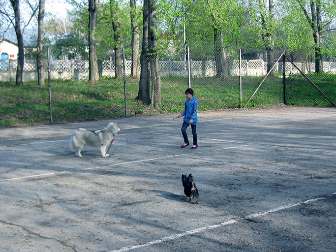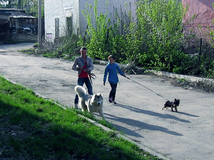 Затеяли в парке веселые старты — Пума-всех-быстрей, в перерывых пили суданскую розу, Мартышка вспоминала инстинкты, а на обратной дороге сердилась на Дизеля (испугался встречного-лохматого). Проводив домой щенят, пошли гулять дальше: встретили хозяйку Вавилона, а у родника — Димка вцепился в Пумкину гриву.