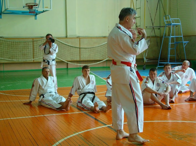 Это второй семинар от Михаила Владимировича (первый приезд в 10-м). Его вообще невозможно остановить после первой произнесенный фразы, часами без перерыва рассказывает, объясняет, параллельно демонстрирует применение техники. Мне понравилось то, как здоровые мужики повсеместно прятали взгляд, что бы не попасть в ассистенты — не-по-детски-швыряет.