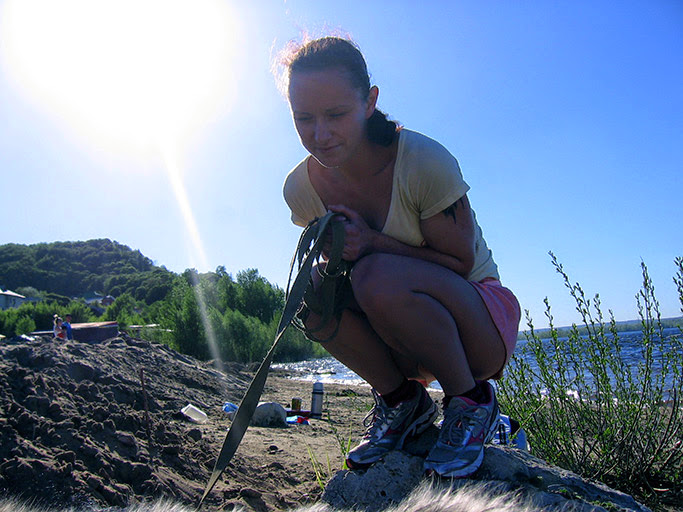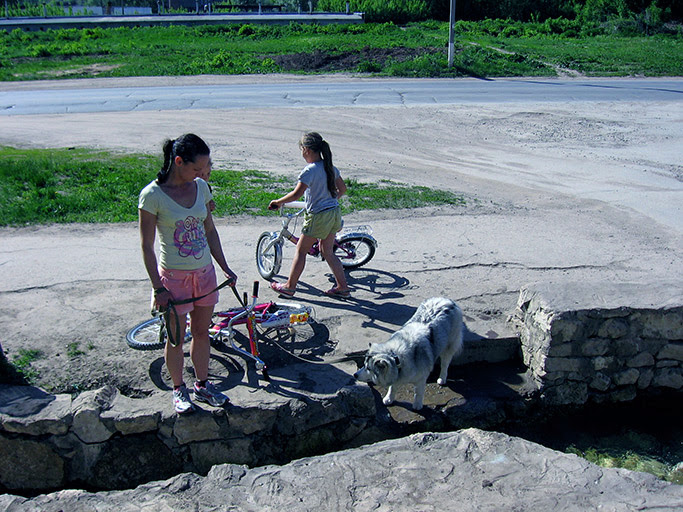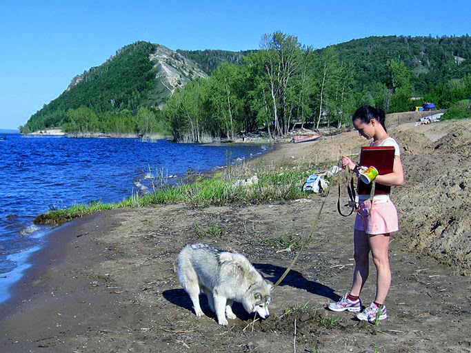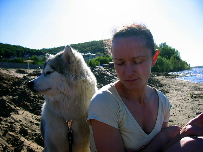 Шли через ручей к большой воде, на берегу познакомилась с коровами, купаться не стала, только лапки смочила, нежилась на солнышке, пока мы в нарды, нашла источник и сделала родник.