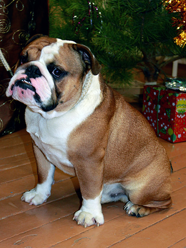 Новогодняя фотосессия, в стойке сфотографировать так и не удалось: ни за уговоры, ни за печеньки — не согласился, — нет, и все, пошел играть в мяч, сэр Уинстон.