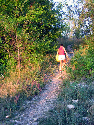Яблоки в дорогу, и вверх, по знакомой тропе. Поднялись, пока вычесывала Пумку, — комары заметили, подлетели, и набросились, а уже дальнейшее «куда-нибудь, только не стоять» — как-то само. Там свернули, тут завернули, быстрей-быстрей, прогулка затянулась, тропинка уходила дальше, выше... Вот, уже.