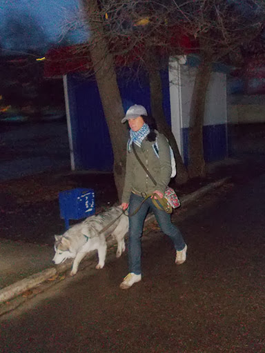 Улицы пустынны, почти (а ведь «день единства сказали», выходной, вечер, набережная, где «гулянья-салюты»?, нету!). Да и вообще мало встречаем, прогуливаясь, бывало в спину: «Лена-Лена, привет!», идем дальше (не-слыша/не-замечая, в дверь его!), а оно, обгоняя, на тротуар и с фронта (в окно!): «Лена-Лена, привет!» (подъехало поздороваться), ну и стандартное: хорошенькая, такая пушистая, большая... Хотя может и зря я, ругаюсь (уже инвалид, из машины не вылезает). Ребята, если желание поздороваться, пересиливает желание поднять «то», то не надо: не надо «бибикать» (я не в прозрачной машине), кричать громко-громко не высовывая лица (если не в лесу к тому же); лучше так: ножками-ножками, за километр (чтобы «как будто случайно», а не «поклониться, вот, причалить»), и уже тогда, возможно: и поговорим, побоксируем, в футбол попинаем, а иначе позыв ваш я не понимаю. Но вернемся на землю: где-то ближе к набережной ярче, на обратном пухлый лабрадор, травку щипали.