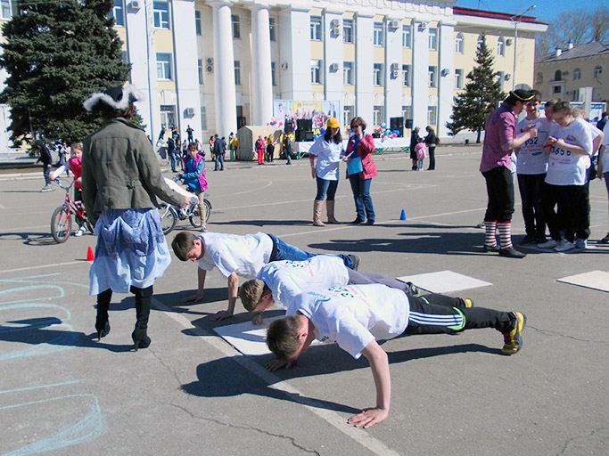 Получилось неожиданно (как для меня, так и для детей) весело. Линка с Сонькой уже ждали на площади...