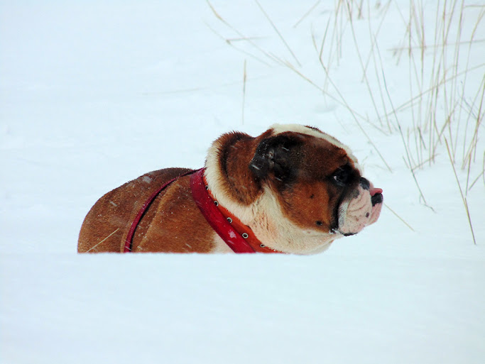 1 апреля 2014 года выдалось максимально снежным, и это хорошо (пусть снег хоть ненадолго отсрочит видимость того упаднического состояния так называемых дорог). Бульдоги гуляли по знакомому маршруту, ну а я, — в школе, учила и училась: "Это, дети, птичка (а породу я к сожалению не знаю)..."
