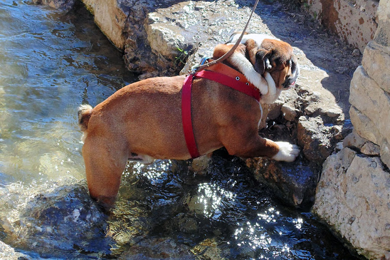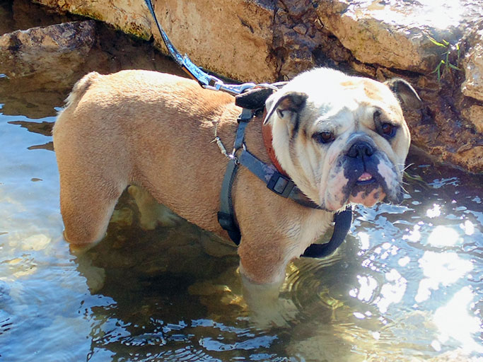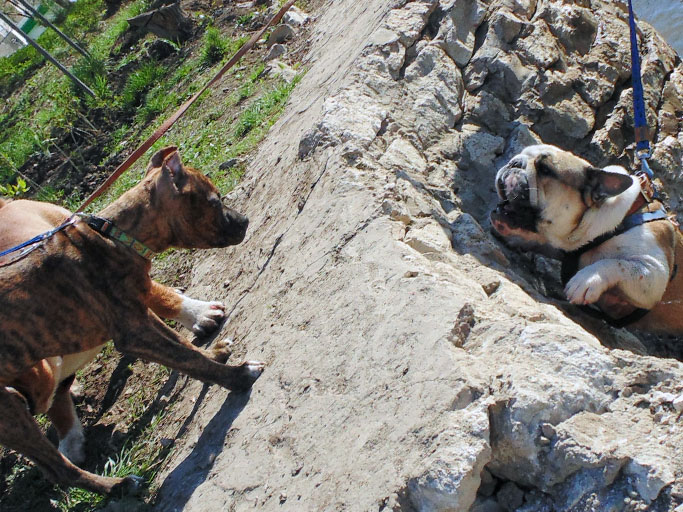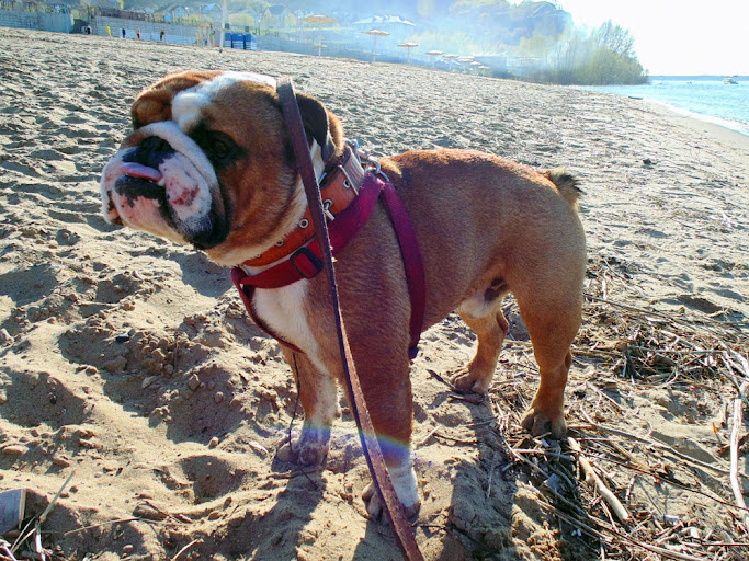 По пути на пляж, ученицы скормили Черчиллю старый футбольный мяч, ему понравился, взял себе, он любит мячи (особенно баскетбольные). Когда бульдоги отдыхали после плескания в ручье, Пума повстречала молодого стаффорда, Джеромке это не понравилось, и она выказала свое недовольство весьма категоричным и типичным для нее образом, но Черчилль же, следом, извинился: — мало-ли, подумал, а вдруг (дипломат). А на обратном пути, на этом же месте, сэр Уинстон поздоровался с приятелем биглем (встречали зимой на горе), Джеромка не протестовала.