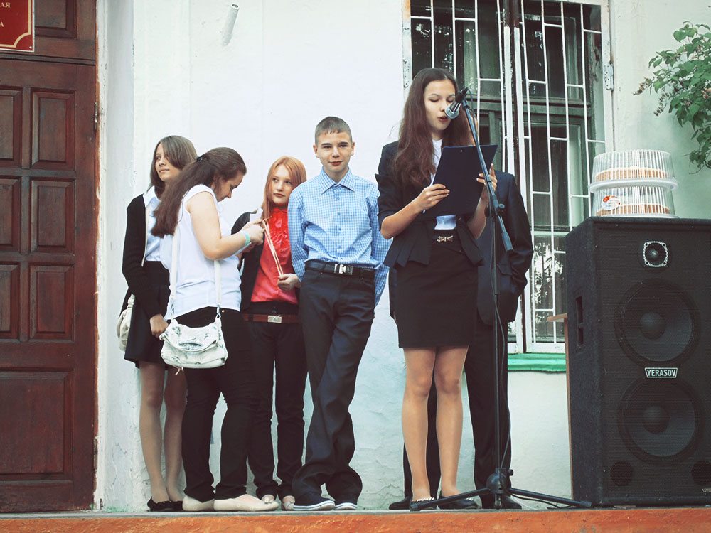 Лина начинает «четвертый», Арсений репетирует. У класса новый руководитель, но официального знакомства еще не было, интрига, закулисные щебетания. Данная неопределенность явилась основой дискурса: "... cледовательно, простая регистрация сугубо объективных фактов..." Далее, действие из 7-ой, переносится в школу №3, где, в общем-то, ничего нового, старая добрая классика: запуск, построение, приветствие, перезвон, цветы, много цветов.