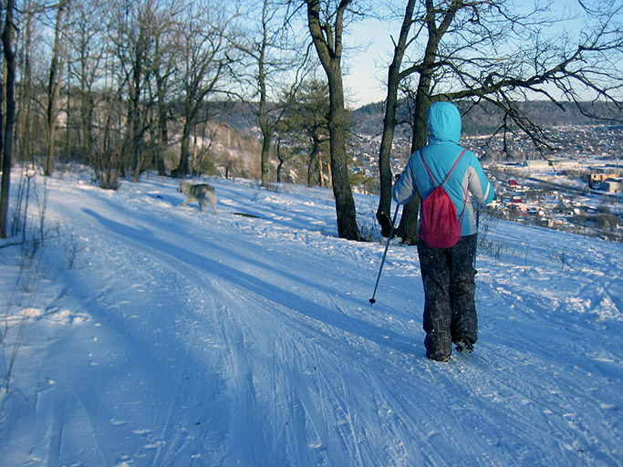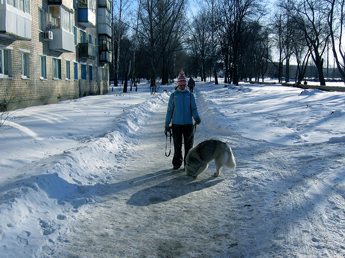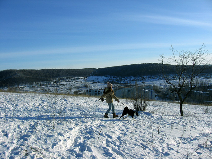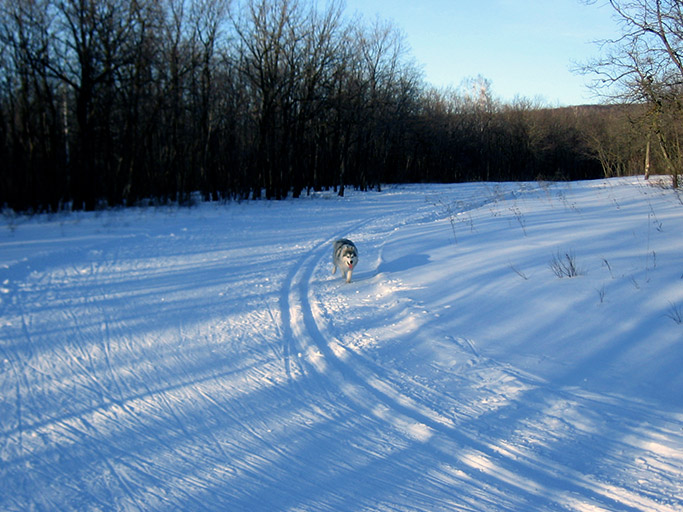 По Пумкиным меркам гуляли продуктивно: она успела и в снегу поваляться, и палки погрызть, безудержно гонять, искать...