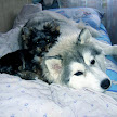 Летом, так и вообще — красота, в парке тусуется куча друзей, таких же габаритов и размеров, он с ними, на перегонки, дома с кошкой, в «догонялки», или с Пумкой, борется, к вечеру, где упадет, там и «в сон уходит». С хозяевами — сама нежность (особенно с бабушкой), очень ласковый, ему дай волю — всех зацелует, готов часами сидеть на руках, если гладят. Уже прошел почти год, как маленький йоркширский терьер проживает с пушистой сибирской хаски под одним боком, и не меняется, все такой же — хулиганистый щенок с большими амбициями.