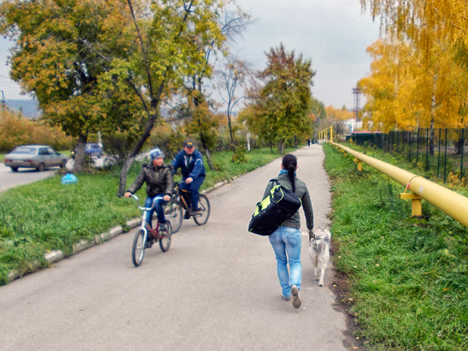 Пумка гуляет не поднимая носа, много новых осенних запахов. Наткнулась на открытый колодец, глянула кто в нем живет, а через дорогу потянулась за кошкой, и расстроилась от того, что занять «кошкин трон» своими силами не суждено. У дома встретила трех одинаковых псов и затэстила новый 10-метровый поводок.