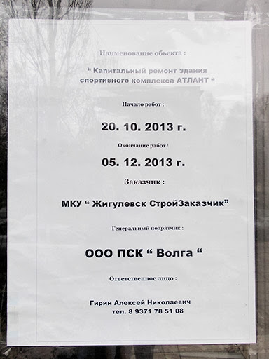 На школьной площадке Серега устроил футбольный матч с племянником-гномом, а в перерывах Гном дрессировал Пуму. На Волгу. У «Атланта» подозрительный внутренней шум: пошли! «Приближение-камера-мотор» и последующий вопрос «с крыльца»: «Вам зачем, посмеяться надо что-ли?» с дальнейшей дискуссией в ключе: «Такое вообще не подлежит восстановлению, бассейн — это не стадион, здесь требуется полное соблюдение тех-регламента (и много-много технических терминов)!» Факт, если сдача футбольного запланирована на «15.12.2014, то дата к «05.12.2013» действительно смешная, причем полна коварного ехидства и прищура, но! — этот смех смешон едва-ли. Честно. Когда идиотизмом становится моветоном, то воспринимать его нужно в качестве «белого шума», который, как правило, слушать невыносимо, и его просто выключаешь, так например: — «открытую ладонью ко лбу, и слегка головой так влево-вправо» (но вот здесь правд по краешку, никуда ничего не прикладывая, аккуратно).